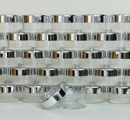 5 Beauty Lip Balm Containers Empty Small Plastic Cosmetic Pigment Jars Silver Trim Acrylic Lid 10 Gram 10 Ml (3011-5)