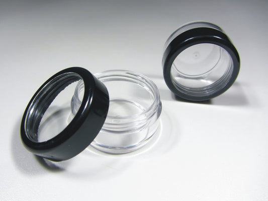 25 Cosmetic Jars Plastic Beauty Lip Balm Makeup Containers Black Trim Acrylic Lid 10 Gram 10 Ml (3010-25)