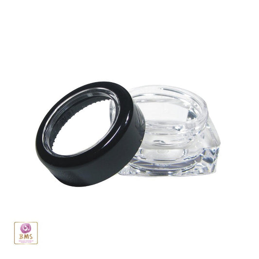 25 Cosmetic Sample Containers Thick Wall Square Lip Balm Makeup Jars Black Trim Acrylic Lid 5 Gram 5 Ml (3039-25)