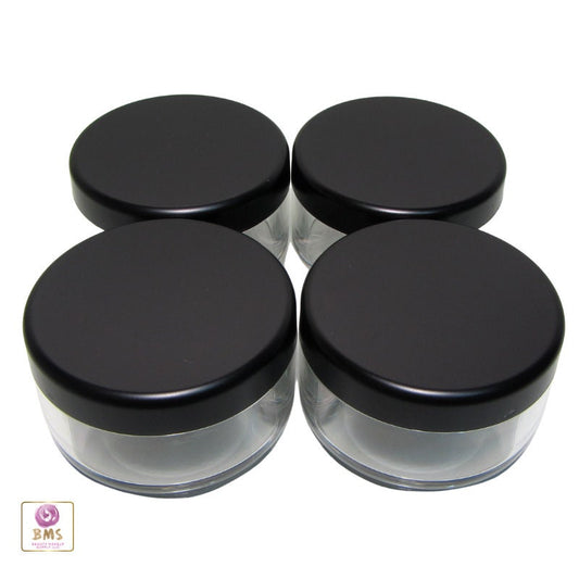 50 Cosmetic Jars Clear Plastic Beauty Loose Face powder Containers Matte Black Lids 30 Gram 30 Ml (3073-50)