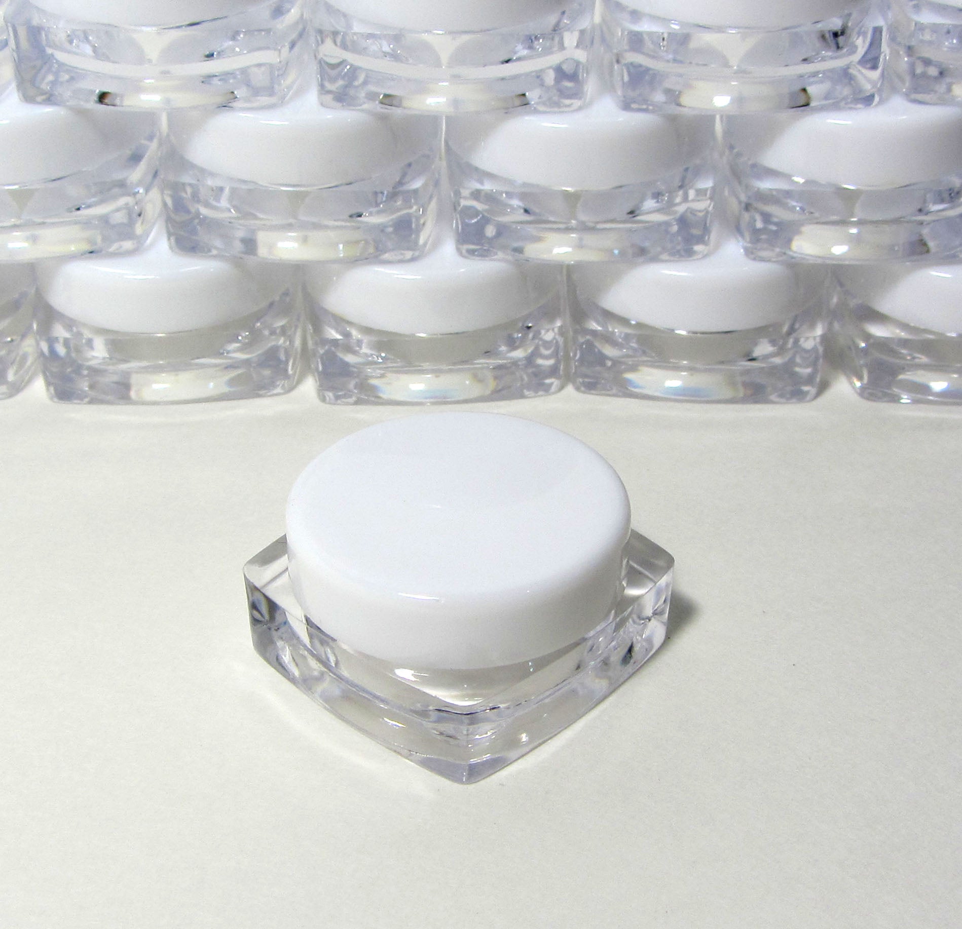 Beauty-Makeup-Supply offers a range of mini cosmetic sample jars with a clear square base and different lid colors. These jars are perfect for storing and showcasing your favorite beauty products in a stylish manner. Whether you're a makeup artist, beauty enthusiast, or just looking to streamline your beauty routine, our jars provide a convenient and chic solution for all your cosmetic needs.